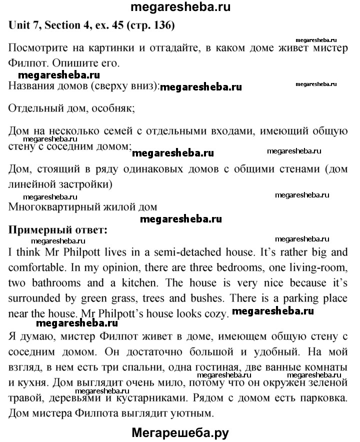 Подробный решебник (ГДЗ) по Английскому языку за 5‐6 (пятый‐шестой) класс - готовый ответ unit 7 1-4 section - 45. Авторы учебника: Биболетова, Денисенко, Трубанева. Издательство: Титул 2015.