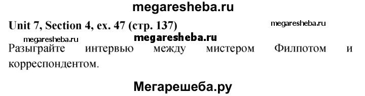 Подробный решебник (ГДЗ) по Английскому языку за 5‐6 (пятый‐шестой) класс - готовый ответ unit 7 1-4 section - 47. Авторы учебника: Биболетова, Денисенко, Трубанева. Издательство: Титул 2015.