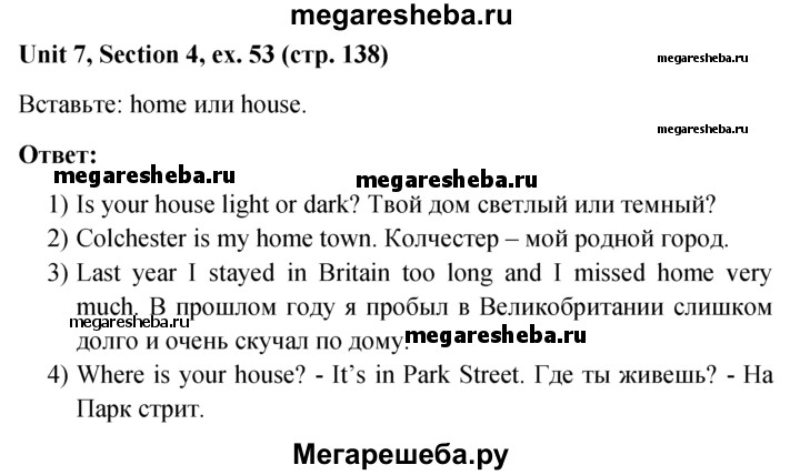 Подробный решебник (ГДЗ) по Английскому языку за 5‐6 (пятый‐шестой) класс - готовый ответ unit 7 1-4 section - 53. Авторы учебника: Биболетова, Денисенко, Трубанева. Издательство: Титул 2015.