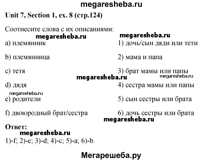 Подробный решебник (ГДЗ) по Английскому языку за 5‐6 (пятый‐шестой) класс - готовый ответ unit 7 1-4 section - 8. Авторы учебника: Биболетова, Денисенко, Трубанева. Издательство: Титул 2015.