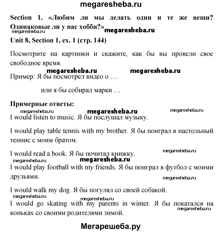 Подробный решебник (ГДЗ) по Английскому языку за 5‐6 (пятый‐шестой) класс - готовый ответ unit 8 1-3 section - 1. Авторы учебника: Биболетова, Денисенко, Трубанева. Издательство: Титул 2015.