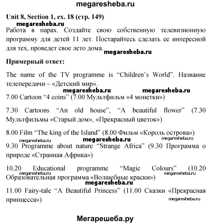 Подробный решебник (ГДЗ) по Английскому языку за 5‐6 (пятый‐шестой) класс - готовый ответ unit 8 1-3 section - 18. Авторы учебника: Биболетова, Денисенко, Трубанева. Издательство: Титул 2015.