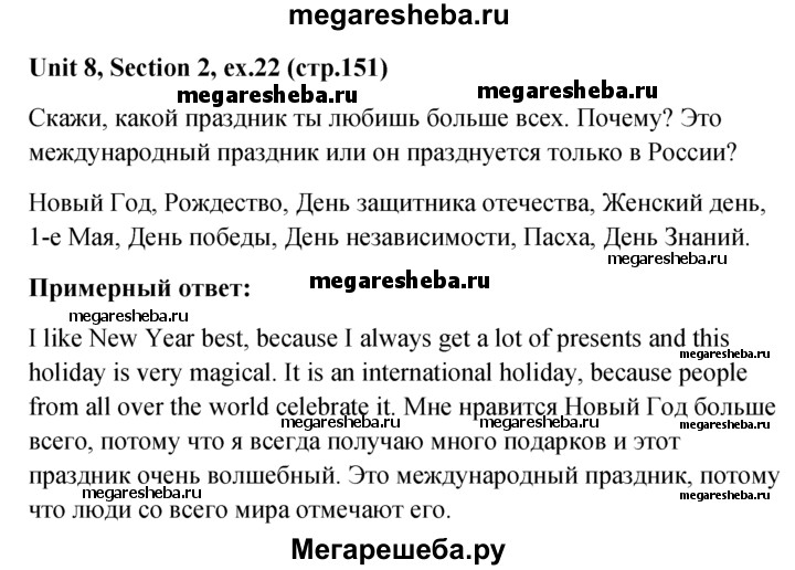 Подробный решебник (ГДЗ) по Английскому языку за 5‐6 (пятый‐шестой) класс - готовый ответ unit 8 1-3 section - 22. Авторы учебника: Биболетова, Денисенко, Трубанева. Издательство: Титул 2015.