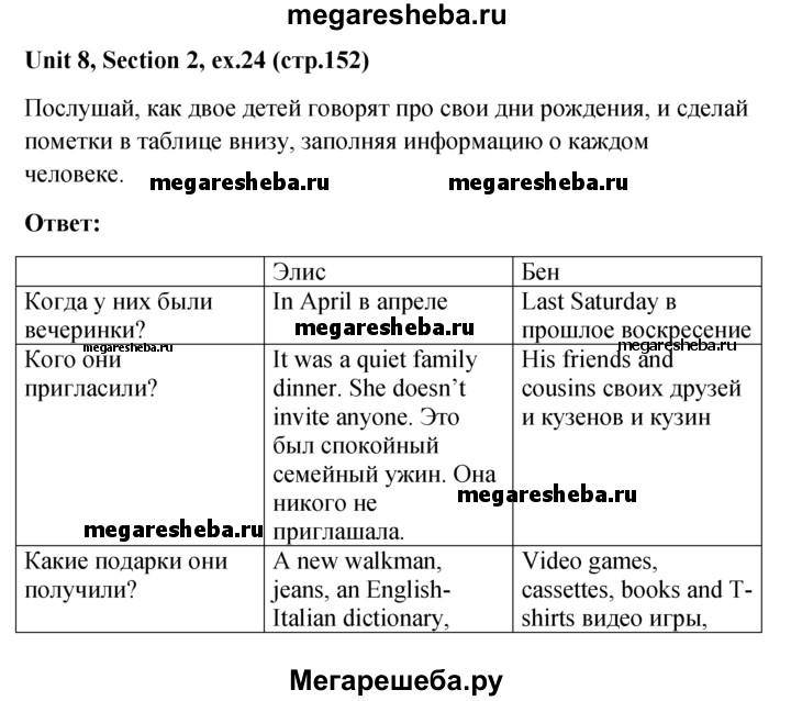 Подробный решебник (ГДЗ) по Английскому языку за 5‐6 (пятый‐шестой) класс - готовый ответ unit 8 1-3 section - 24. Авторы учебника: Биболетова, Денисенко, Трубанева. Издательство: Титул 2015.
