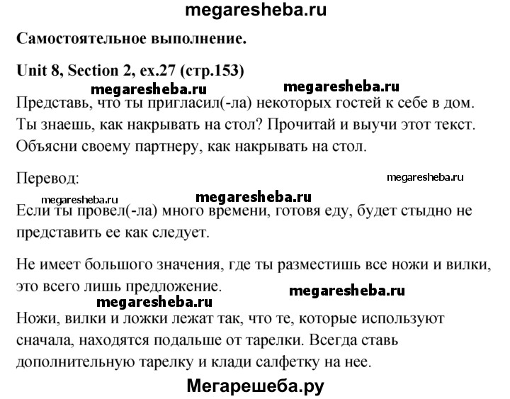 Подробный решебник (ГДЗ) по Английскому языку за 5‐6 (пятый‐шестой) класс - готовый ответ unit 8 1-3 section - 27. Авторы учебника: Биболетова, Денисенко, Трубанева. Издательство: Титул 2015.
