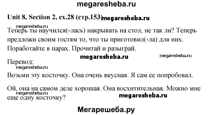 Подробный решебник (ГДЗ) по Английскому языку за 5‐6 (пятый‐шестой) класс - готовый ответ unit 8 1-3 section - 28. Авторы учебника: Биболетова, Денисенко, Трубанева. Издательство: Титул 2015.