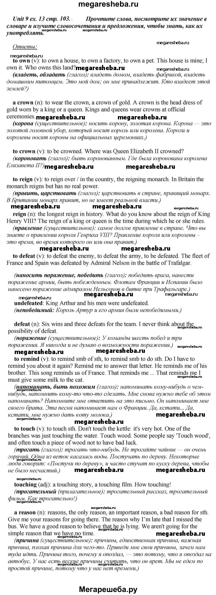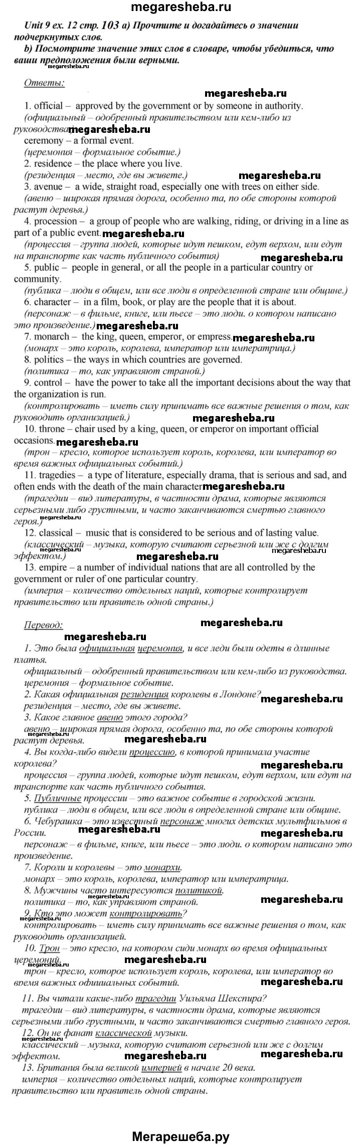 Подробный решебник (ГДЗ) по Английскому языку за 6 (шестой) класс - готовый ответ часть 1. страница - 103. Авторы учебника: Афанасьева, Михеева, Углубленный уровень. Издательство: Просвещение 2015-2023.