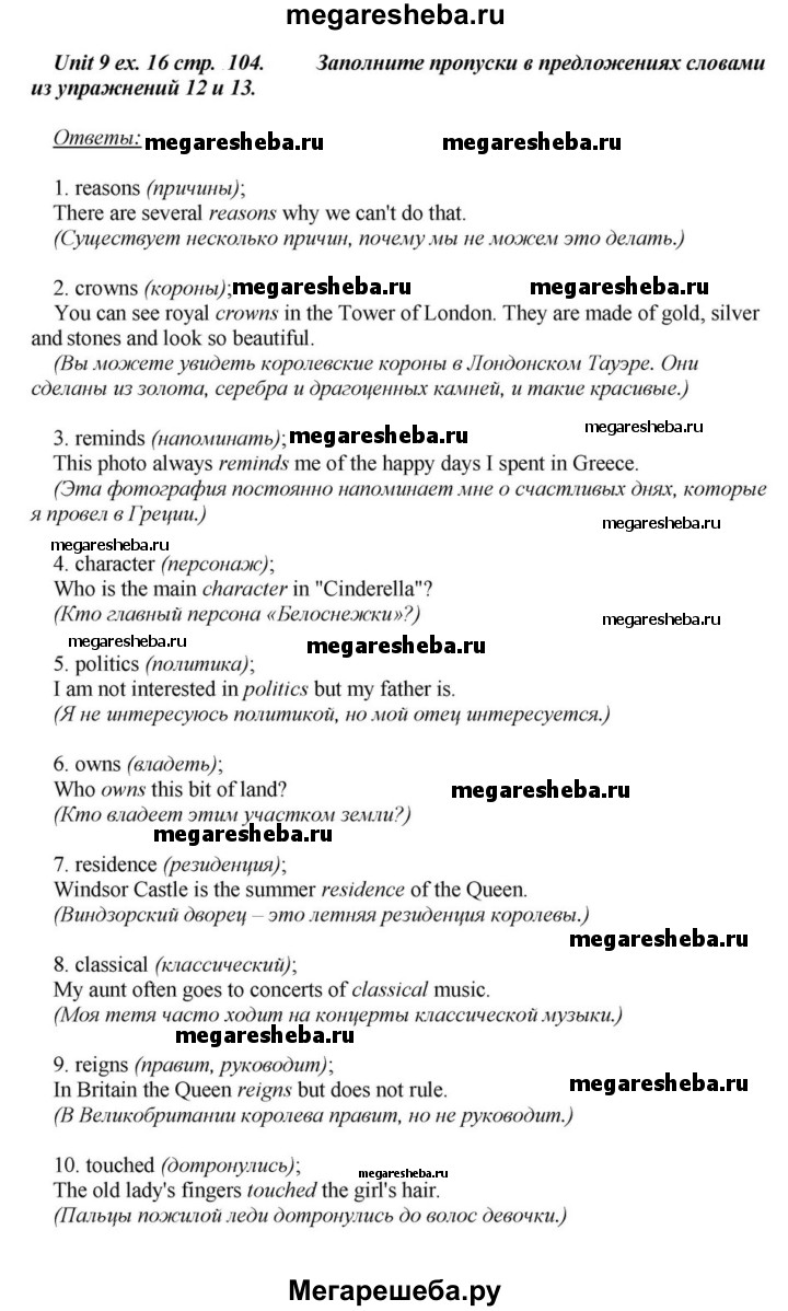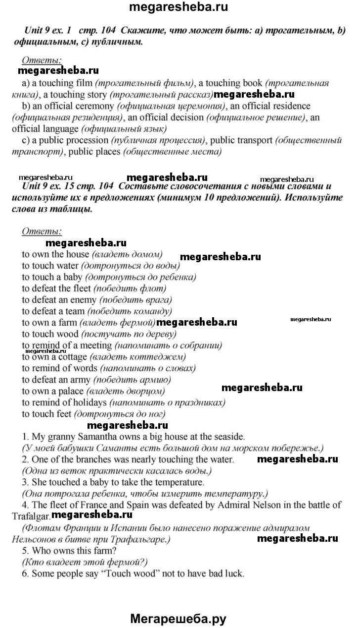 Подробный решебник (ГДЗ) по Английскому языку за 6 (шестой) класс - готовый ответ часть 1. страница - 104. Авторы учебника: Афанасьева, Михеева, Углубленный уровень. Издательство: Просвещение 2015-2023.