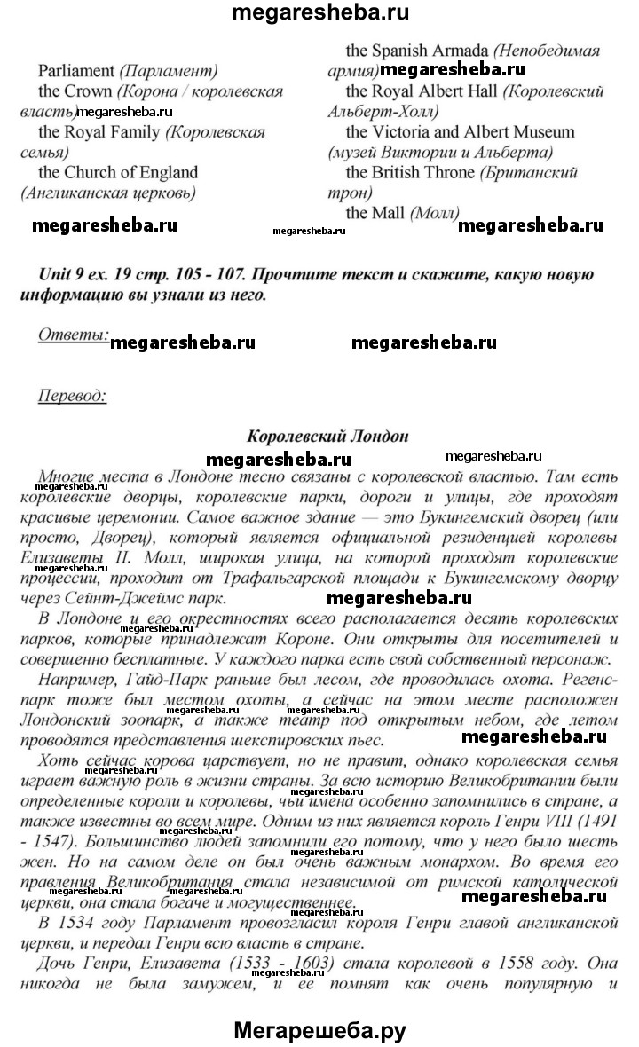 Подробный решебник (ГДЗ) по Английскому языку за 6 (шестой) класс - готовый ответ часть 1. страница - 105. Авторы учебника: Афанасьева, Михеева, Углубленный уровень. Издательство: Просвещение 2015-2023.