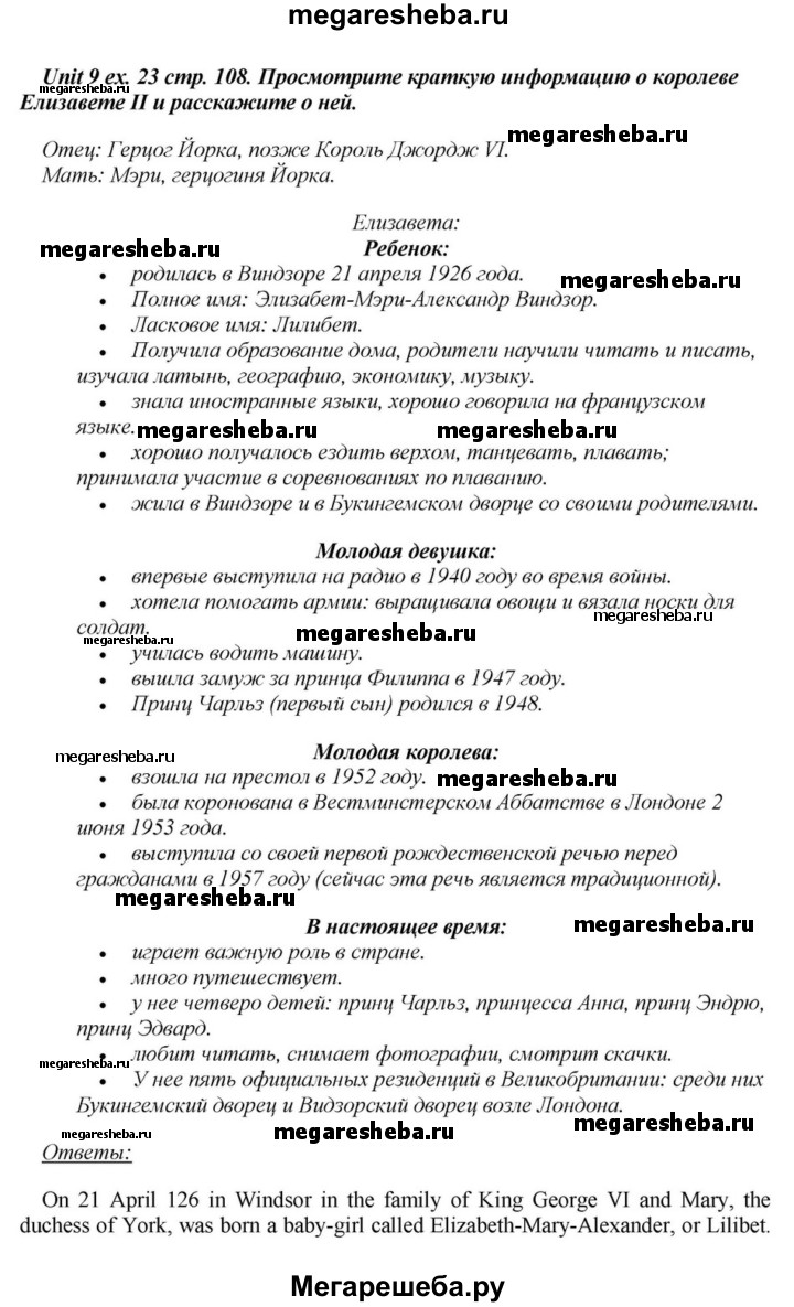 Подробный решебник (ГДЗ) по Английскому языку за 6 (шестой) класс - готовый ответ часть 1. страница - 108. Авторы учебника: Афанасьева, Михеева, Углубленный уровень. Издательство: Просвещение 2015-2023.