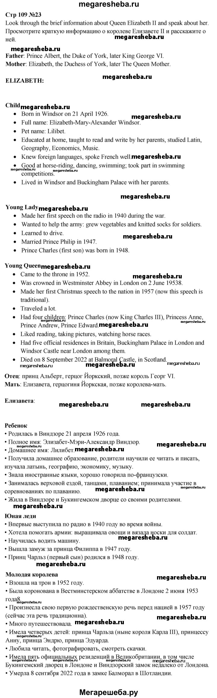 Подробный решебник (ГДЗ) по Английскому языку за 6 (шестой) класс - готовый ответ часть 1. страница - 109. Авторы учебника: Афанасьева, Михеева, Углубленный уровень. Издательство: Просвещение 2015-2023.