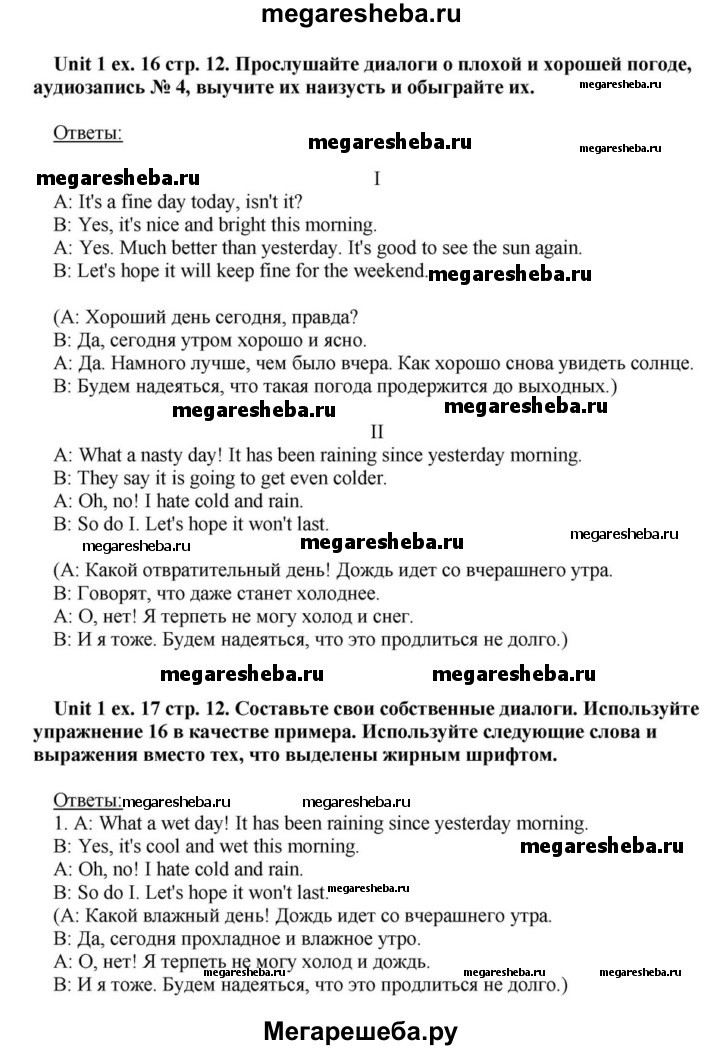 Подробный решебник (ГДЗ) по Английскому языку за 6 (шестой) класс - готовый ответ часть 1. страница - 12. Авторы учебника: Афанасьева, Михеева, Углубленный уровень. Издательство: Просвещение 2015-2023.