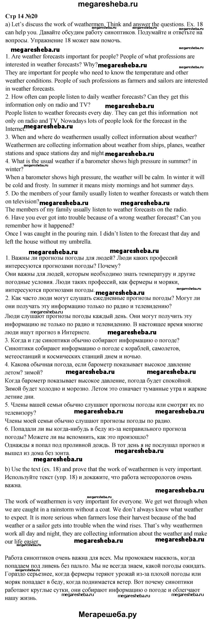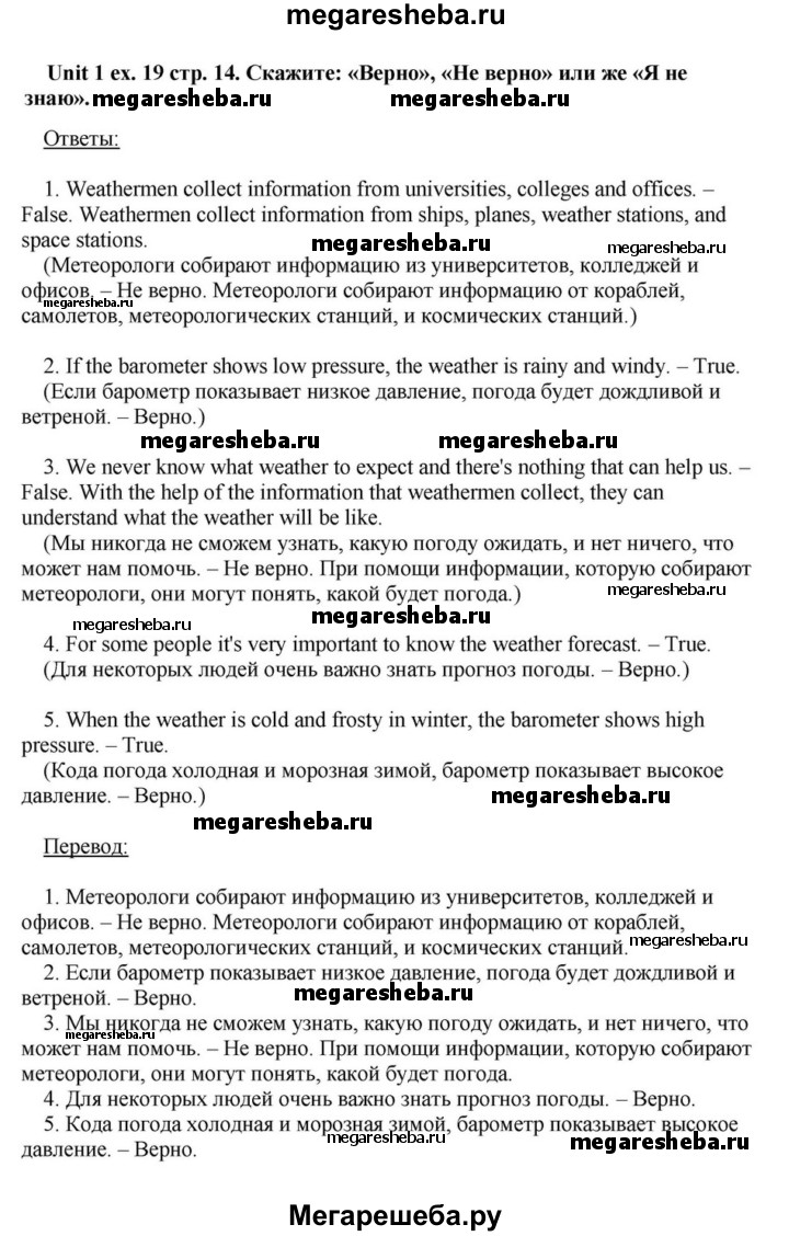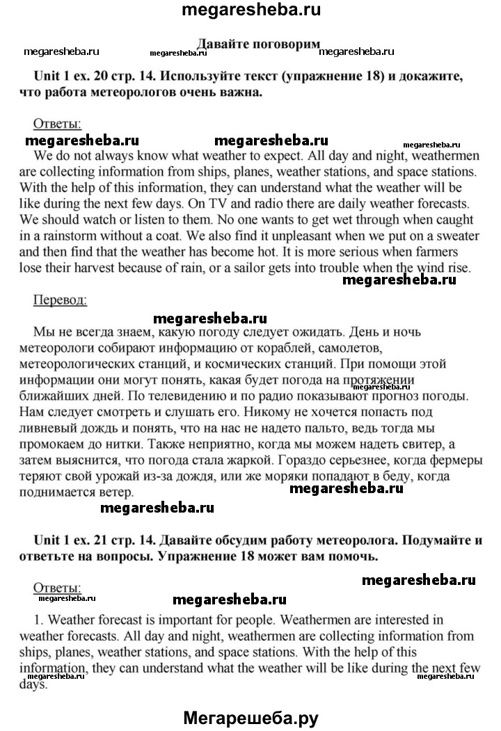 Подробный решебник (ГДЗ) по Английскому языку за 6 (шестой) класс - готовый ответ часть 1. страница - 14. Авторы учебника: Афанасьева, Михеева, Углубленный уровень. Издательство: Просвещение 2015-2023.