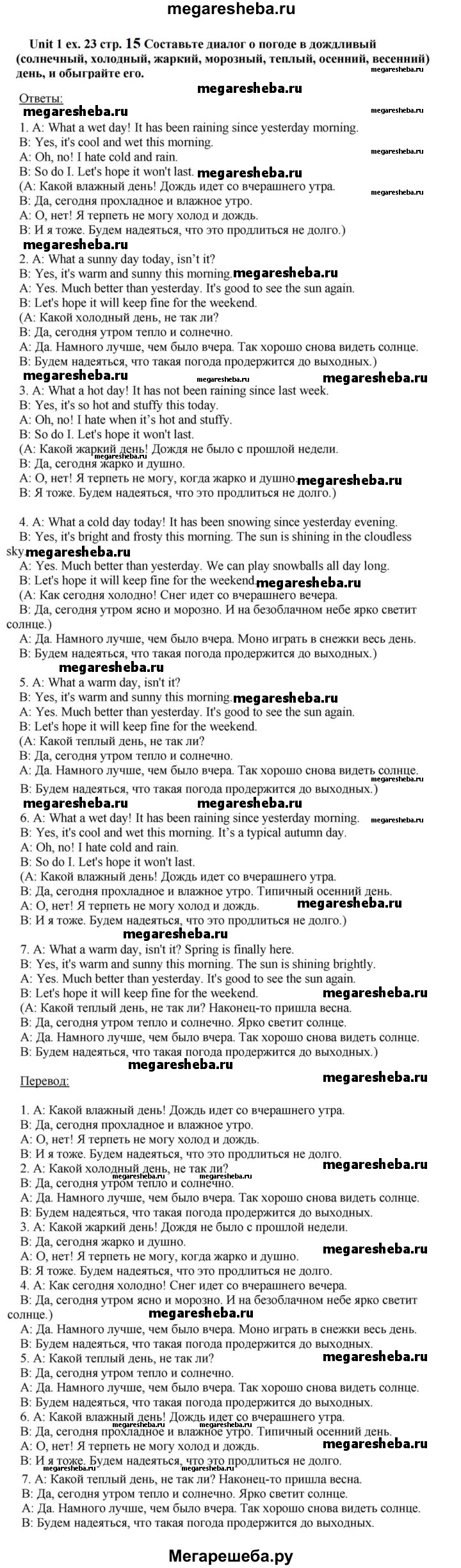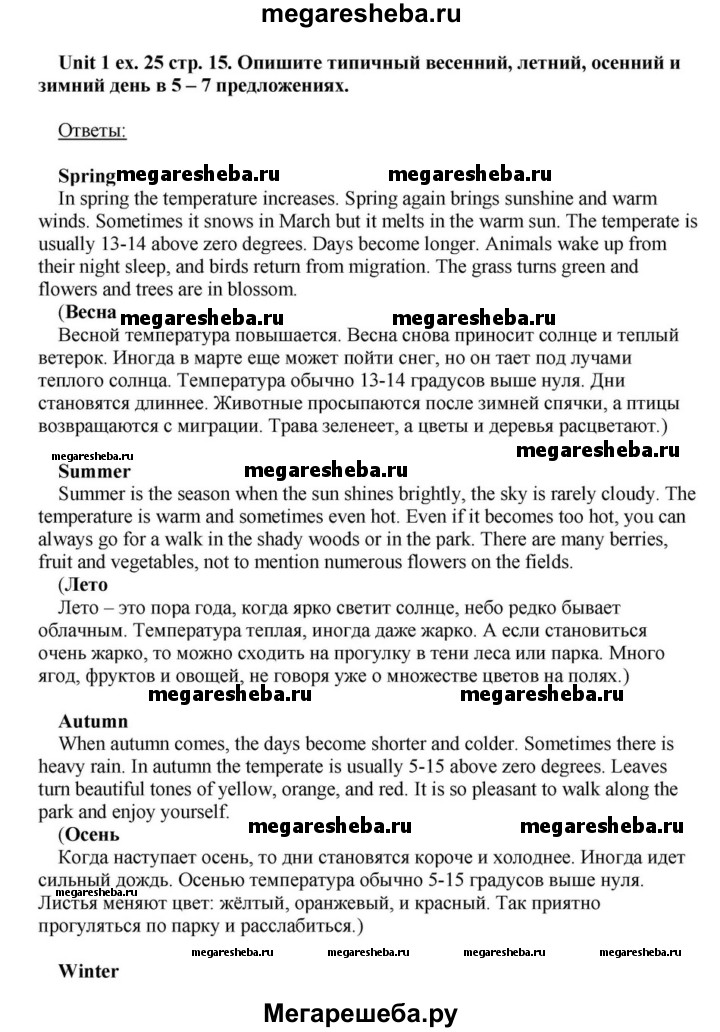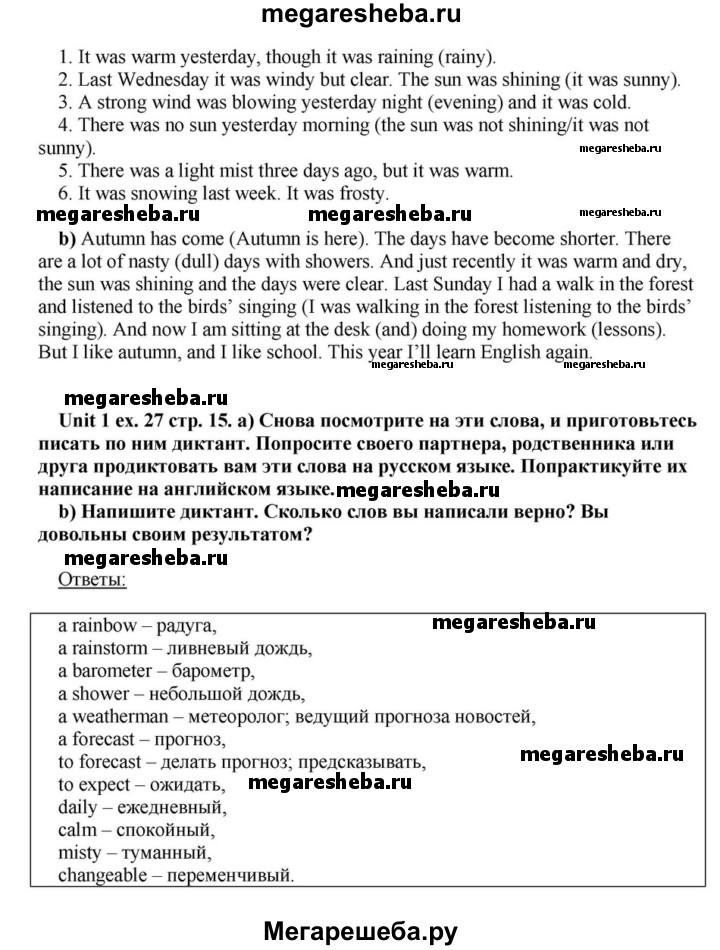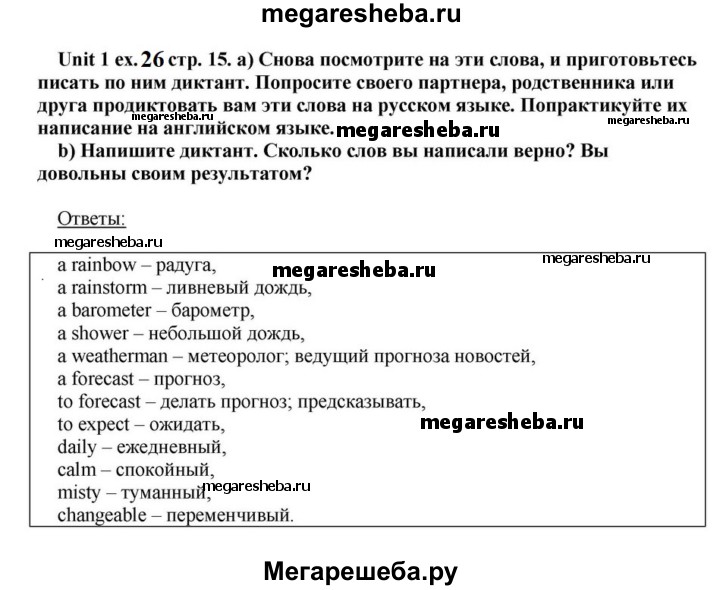 Подробный решебник (ГДЗ) по Английскому языку за 6 (шестой) класс - готовый ответ часть 1. страница - 15. Авторы учебника: Афанасьева, Михеева, Углубленный уровень. Издательство: Просвещение 2015-2023.