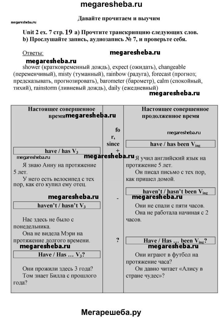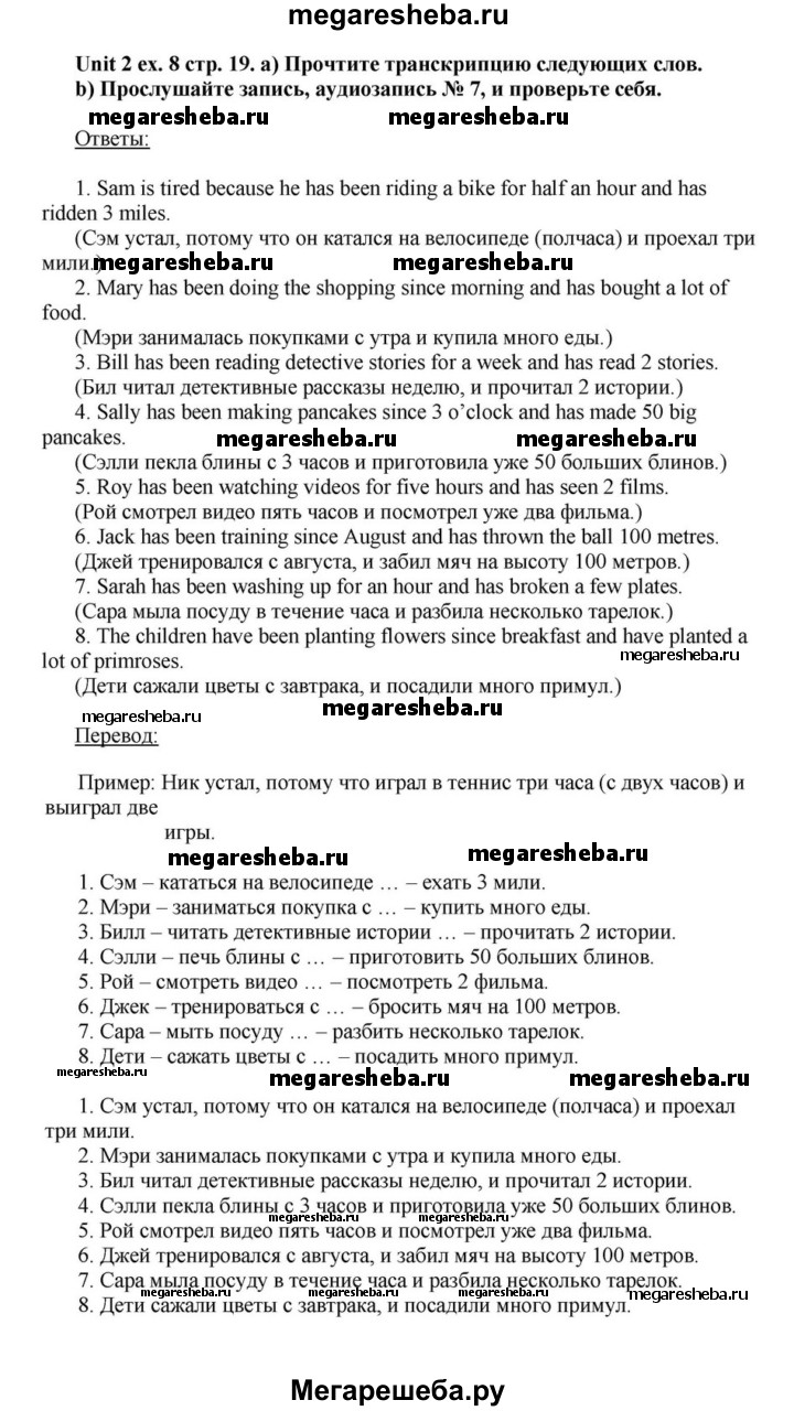 Подробный решебник (ГДЗ) по Английскому языку за 6 (шестой) класс - готовый ответ часть 1. страница - 19. Авторы учебника: Афанасьева, Михеева, Углубленный уровень. Издательство: Просвещение 2015-2023.
