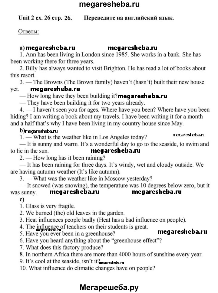 Подробный решебник (ГДЗ) по Английскому языку за 6 (шестой) класс - готовый ответ часть 1. страница - 26. Авторы учебника: Афанасьева, Михеева, Углубленный уровень. Издательство: Просвещение 2015-2023.