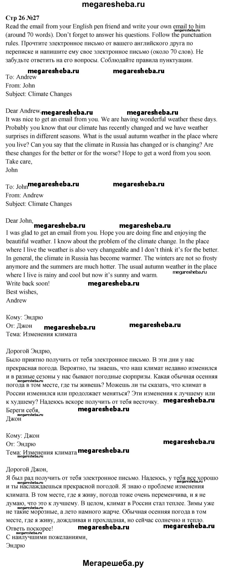 ГДЗ по английскому языку 6 класс Афанасьева Углубленный уровень часть 1. страница - 26