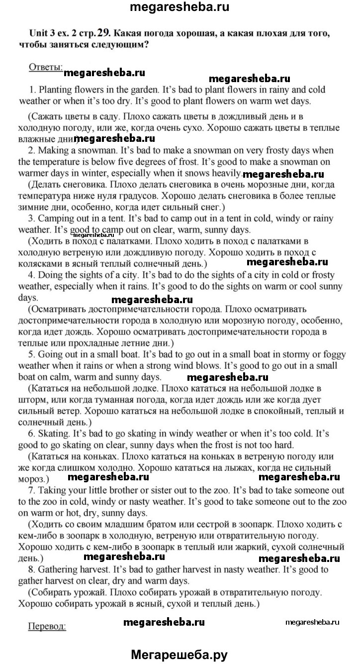 Подробный решебник (ГДЗ) по Английскому языку за 6 (шестой) класс - готовый ответ часть 1. страница - 29. Авторы учебника: Афанасьева, Михеева, Углубленный уровень. Издательство: Просвещение 2015-2023.