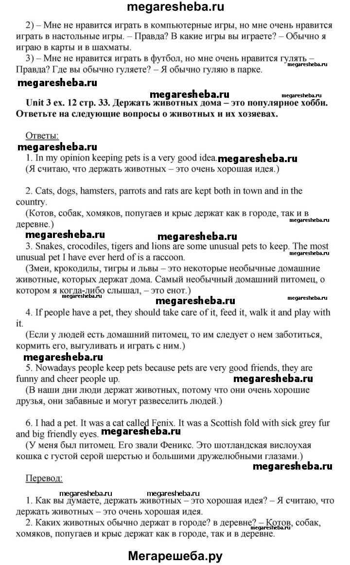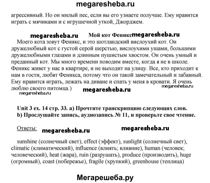 Подробный решебник (ГДЗ) по Английскому языку за 6 (шестой) класс - готовый ответ часть 1. страница - 33. Авторы учебника: Афанасьева, Михеева, Углубленный уровень. Издательство: Просвещение 2015-2023.