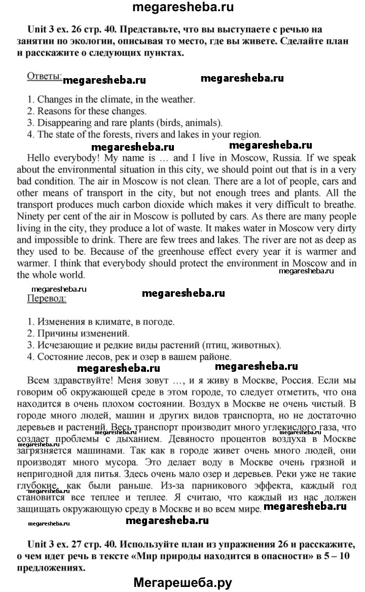 Подробный решебник (ГДЗ) по Английскому языку за 6 (шестой) класс - готовый ответ часть 1. страница - 40. Авторы учебника: Афанасьева, Михеева, Углубленный уровень. Издательство: Просвещение 2015-2023.