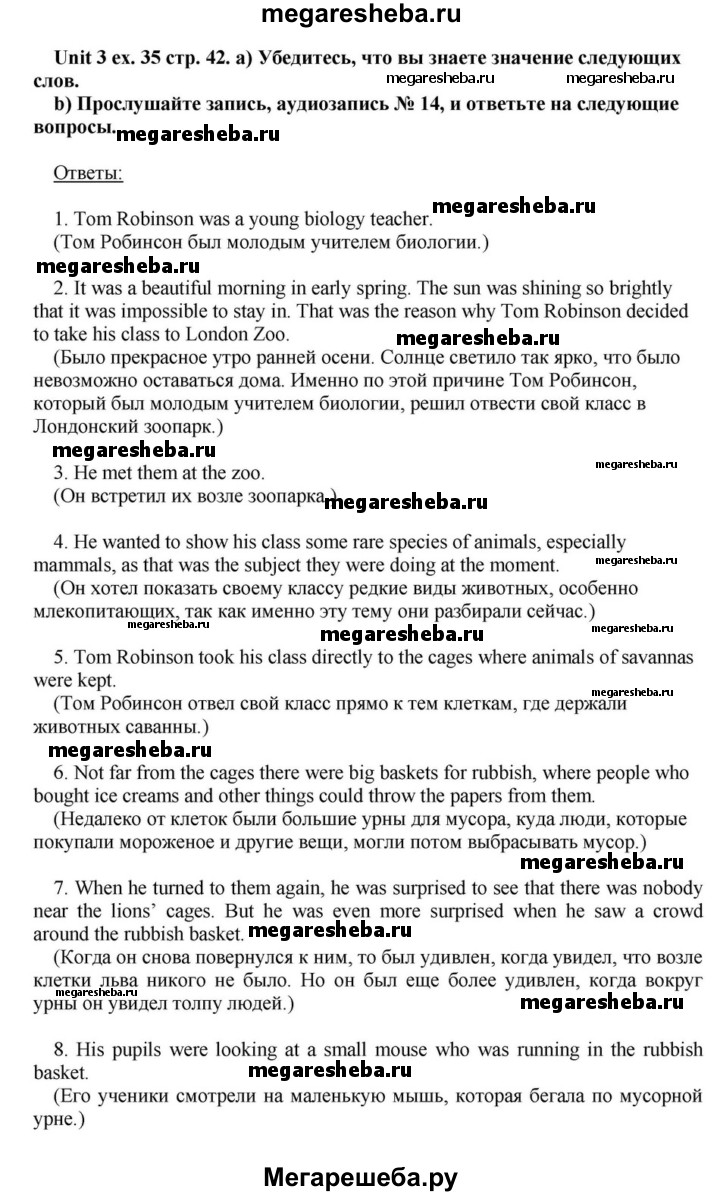 Подробный решебник (ГДЗ) по Английскому языку за 6 (шестой) класс - готовый ответ часть 1. страница - 42. Авторы учебника: Афанасьева, Михеева, Углубленный уровень. Издательство: Просвещение 2015-2023.