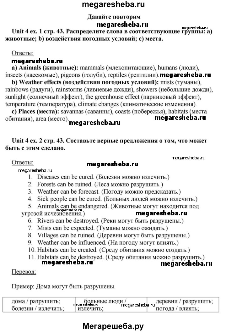 Подробный решебник (ГДЗ) по Английскому языку за 6 (шестой) класс - готовый ответ часть 1. страница - 43. Авторы учебника: Афанасьева, Михеева, Углубленный уровень. Издательство: Просвещение 2015-2023.