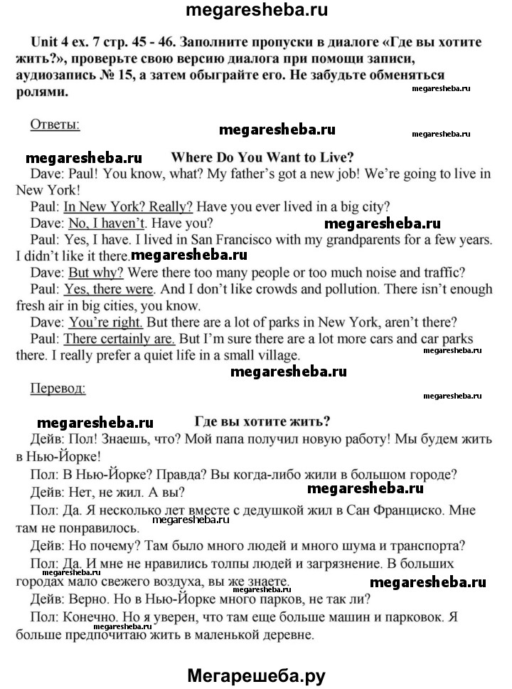 Подробный решебник (ГДЗ) по Английскому языку за 6 (шестой) класс - готовый ответ часть 1. страница - 45. Авторы учебника: Афанасьева, Михеева, Углубленный уровень. Издательство: Просвещение 2015-2023.
