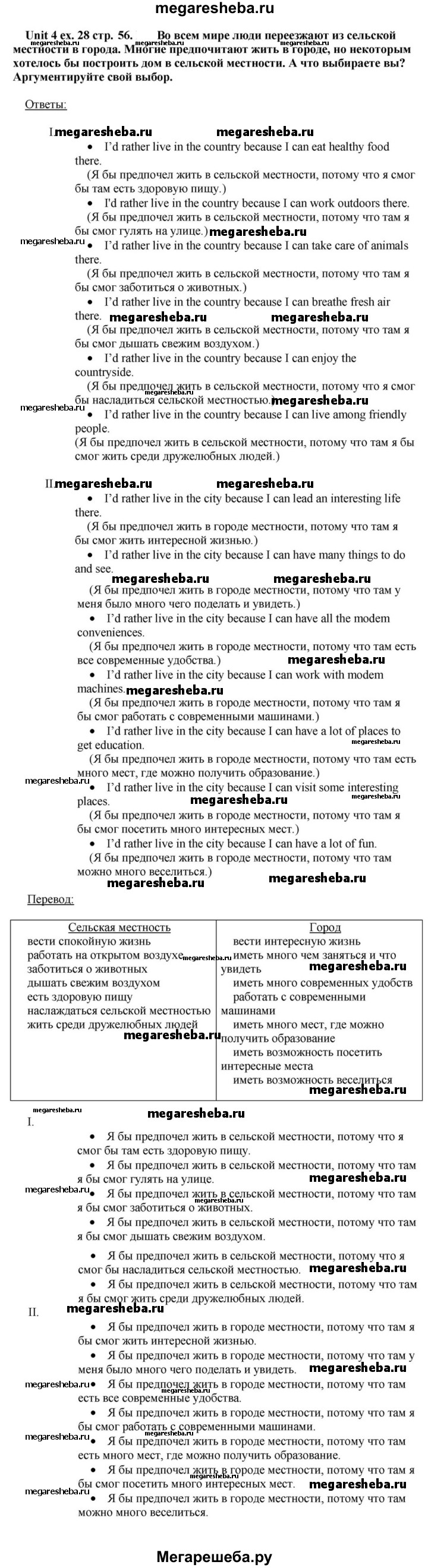 Подробный решебник (ГДЗ) по Английскому языку за 6 (шестой) класс - готовый ответ часть 1. страница - 56. Авторы учебника: Афанасьева, Михеева, Углубленный уровень. Издательство: Просвещение 2015-2023.