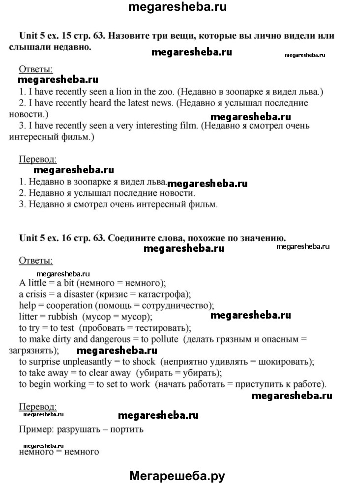 Подробный решебник (ГДЗ) по Английскому языку за 6 (шестой) класс - готовый ответ часть 1. страница - 63. Авторы учебника: Афанасьева, Михеева, Углубленный уровень. Издательство: Просвещение 2015-2023.