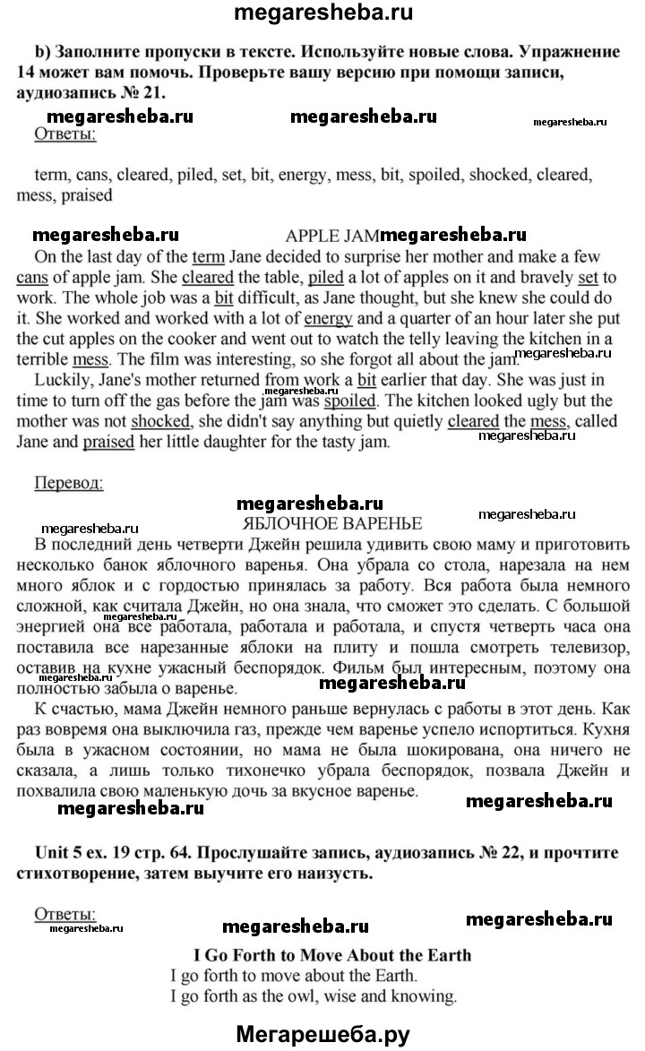 Подробный решебник (ГДЗ) по Английскому языку за 6 (шестой) класс - готовый ответ часть 1. страница - 64. Авторы учебника: Афанасьева, Михеева, Углубленный уровень. Издательство: Просвещение 2015-2023.