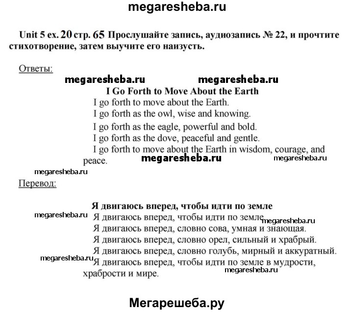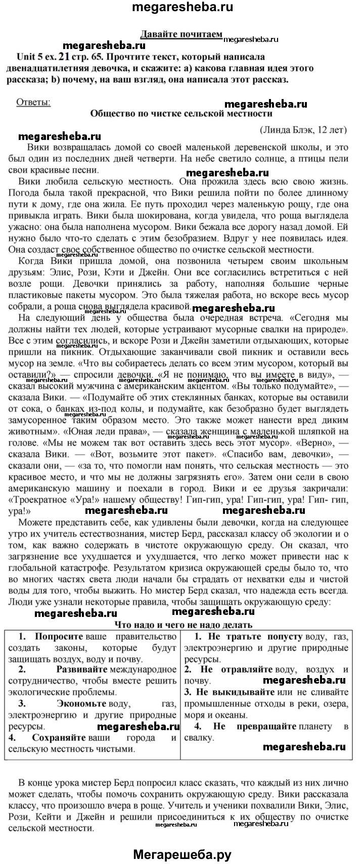 Подробный решебник (ГДЗ) по Английскому языку за 6 (шестой) класс - готовый ответ часть 1. страница - 65. Авторы учебника: Афанасьева, Михеева, Углубленный уровень. Издательство: Просвещение 2015-2023.