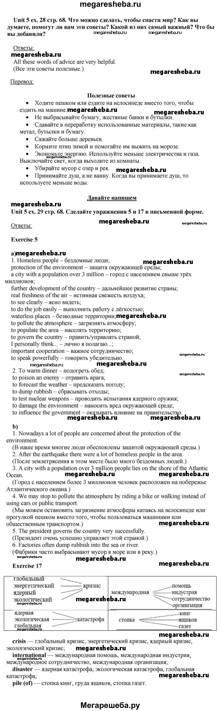 Подробный решебник (ГДЗ) по Английскому языку за 6 (шестой) класс - готовый ответ часть 1. страница - 68. Авторы учебника: Афанасьева, Михеева, Углубленный уровень. Издательство: Просвещение 2015-2023.