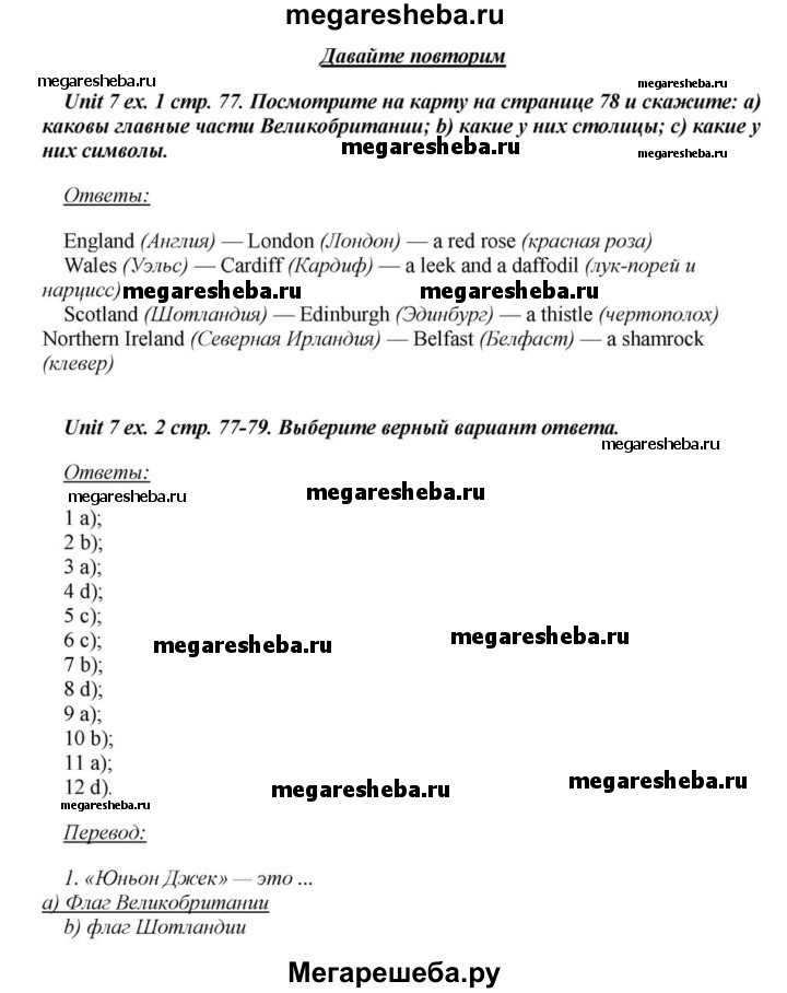 Подробный решебник (ГДЗ) по Английскому языку за 6 (шестой) класс - готовый ответ часть 1. страница - 77. Авторы учебника: Афанасьева, Михеева, Углубленный уровень. Издательство: Просвещение 2015-2023.