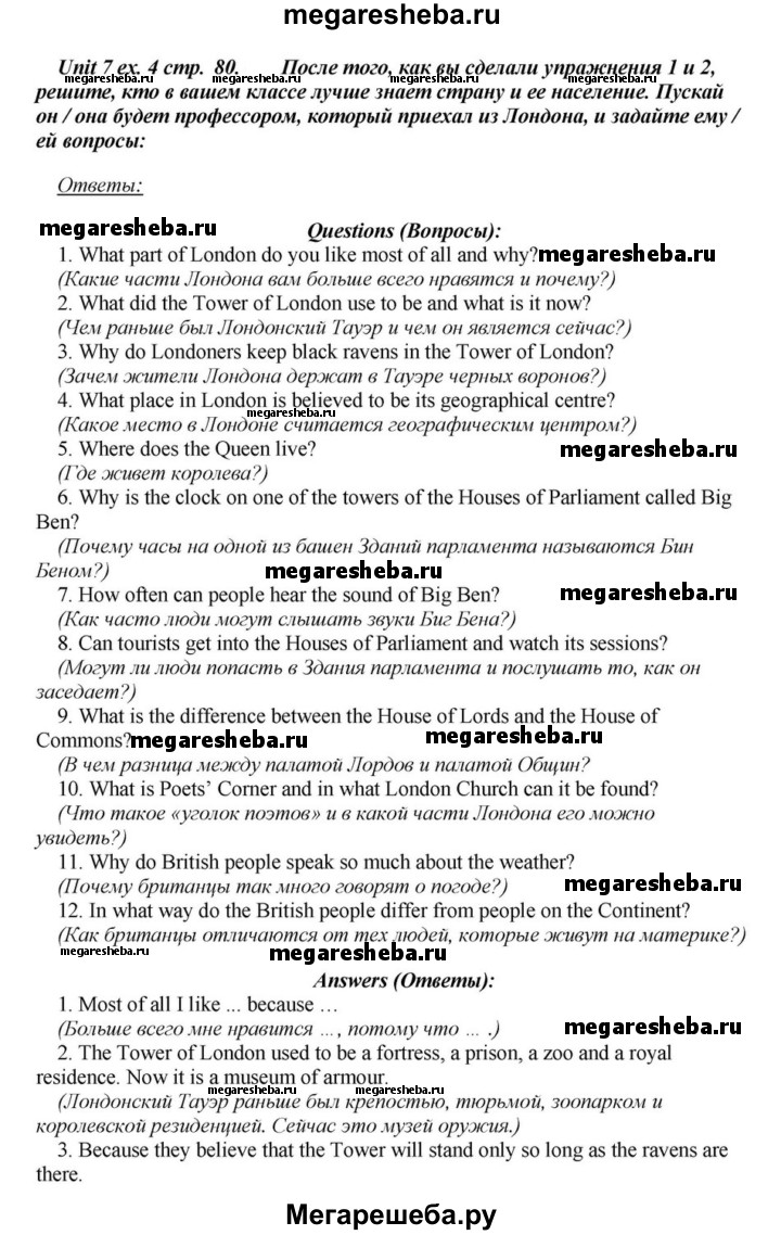 Подробный решебник (ГДЗ) по Английскому языку за 6 (шестой) класс - готовый ответ часть 1. страница - 80. Авторы учебника: Афанасьева, Михеева, Углубленный уровень. Издательство: Просвещение 2015-2023.