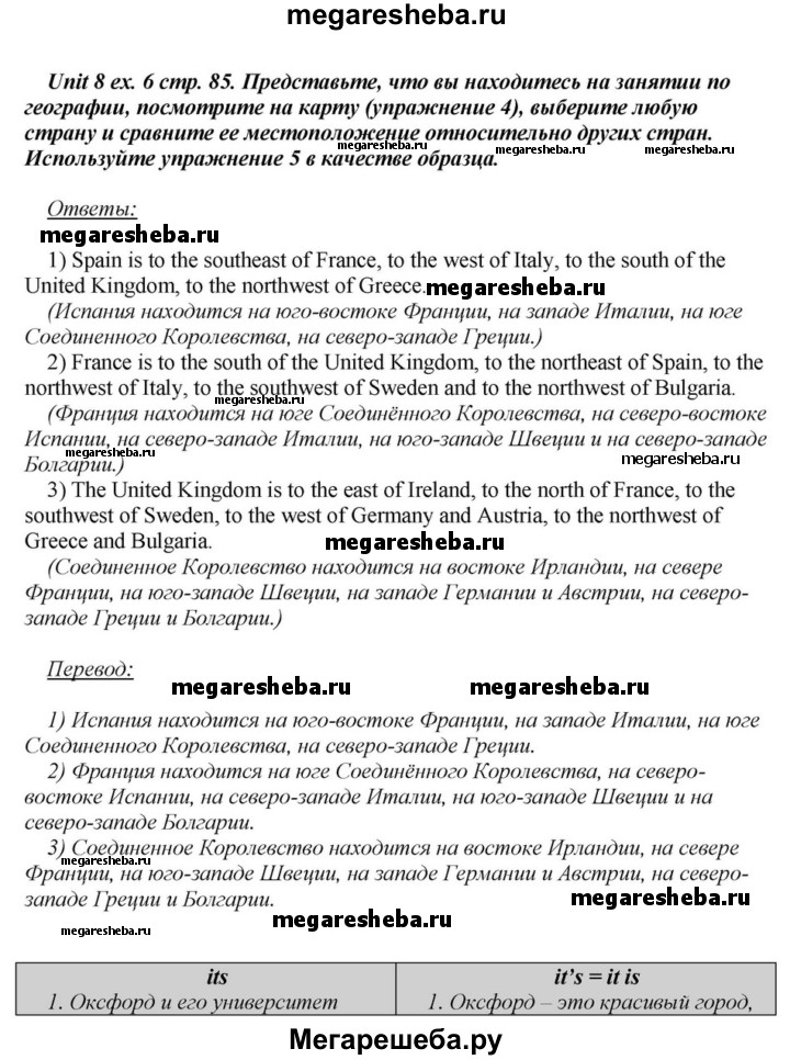 Подробный решебник (ГДЗ) по Английскому языку за 6 (шестой) класс - готовый ответ часть 1. страница - 85. Авторы учебника: Афанасьева, Михеева, Углубленный уровень. Издательство: Просвещение 2015-2023.