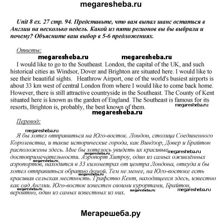 Подробный решебник (ГДЗ) по Английскому языку за 6 (шестой) класс - готовый ответ часть 1. страница - 94. Авторы учебника: Афанасьева, Михеева, Углубленный уровень. Издательство: Просвещение 2015-2023.