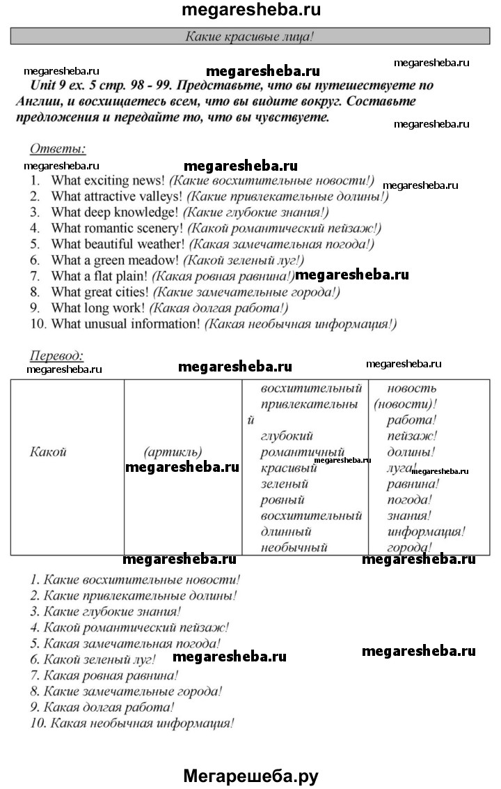 Подробный решебник (ГДЗ) по Английскому языку за 6 (шестой) класс - готовый ответ часть 1. страница - 98. Авторы учебника: Афанасьева, Михеева, Углубленный уровень. Издательство: Просвещение 2015-2023.