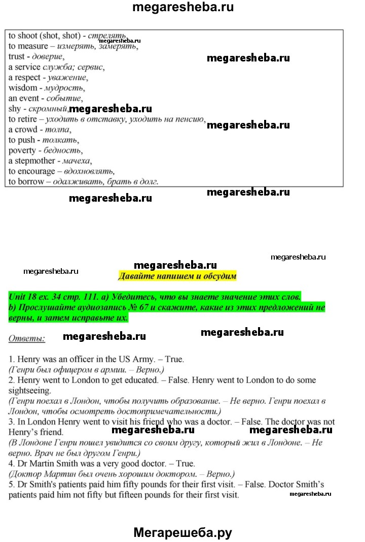 Подробный решебник (ГДЗ) по Английскому языку за 6 (шестой) класс - готовый ответ часть 2. страница - 111. Авторы учебника: Афанасьева, Михеева, Углубленный уровень. Издательство: Просвещение 2015-2023.