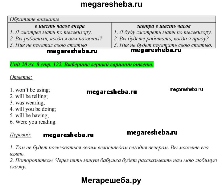 Подробный решебник (ГДЗ) по Английскому языку за 6 (шестой) класс - готовый ответ часть 2. страница - 122. Авторы учебника: Афанасьева, Михеева, Углубленный уровень. Издательство: Просвещение 2015-2023.