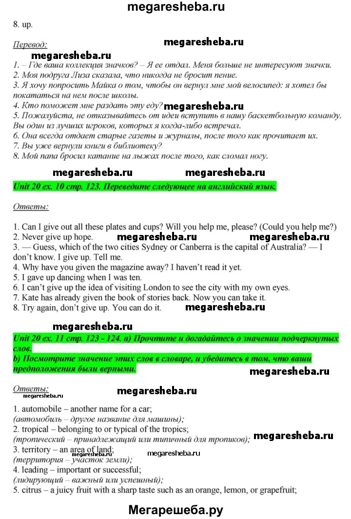 Подробный решебник (ГДЗ) по Английскому языку за 6 (шестой) класс - готовый ответ часть 2. страница - 123. Авторы учебника: Афанасьева, Михеева, Углубленный уровень. Издательство: Просвещение 2015-2023.