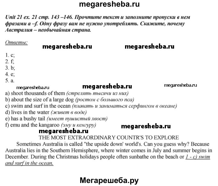 Подробный решебник (ГДЗ) по Английскому языку за 6 (шестой) класс - готовый ответ часть 2. страница - 143. Авторы учебника: Афанасьева, Михеева, Углубленный уровень. Издательство: Просвещение 2015-2023.
