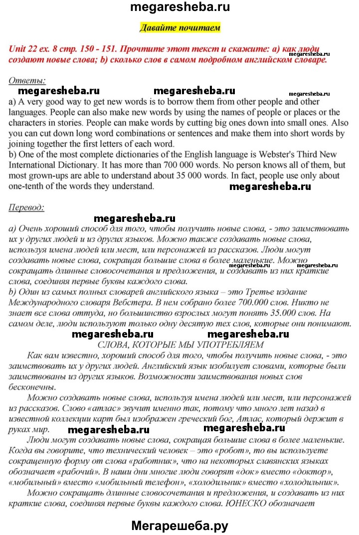 Подробный решебник (ГДЗ) по Английскому языку за 6 (шестой) класс - готовый ответ часть 2. страница - 150. Авторы учебника: Афанасьева, Михеева, Углубленный уровень. Издательство: Просвещение 2015-2023.