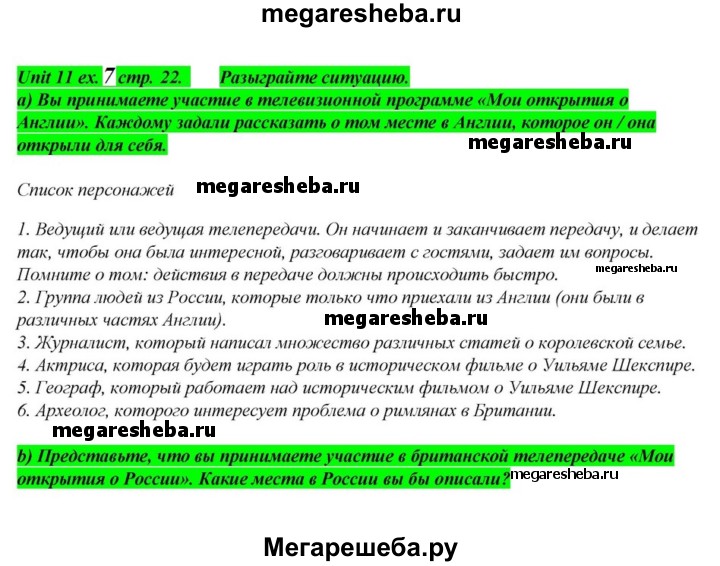 Подробный решебник (ГДЗ) по Английскому языку за 6 (шестой) класс - готовый ответ часть 2. страница - 22. Авторы учебника: Афанасьева, Михеева, Углубленный уровень. Издательство: Просвещение 2015-2023.