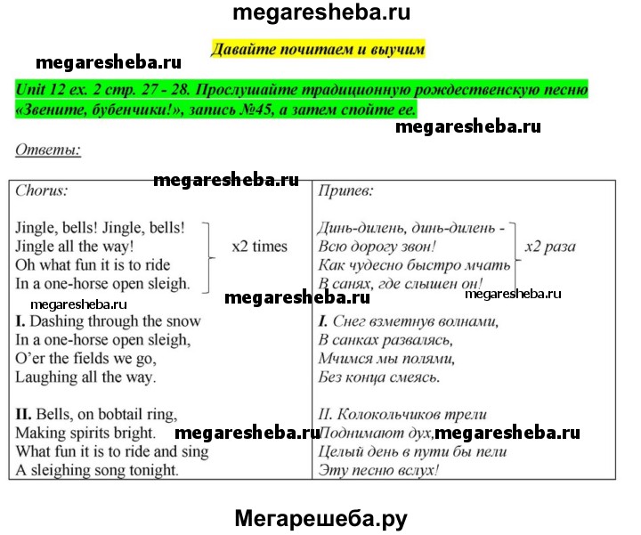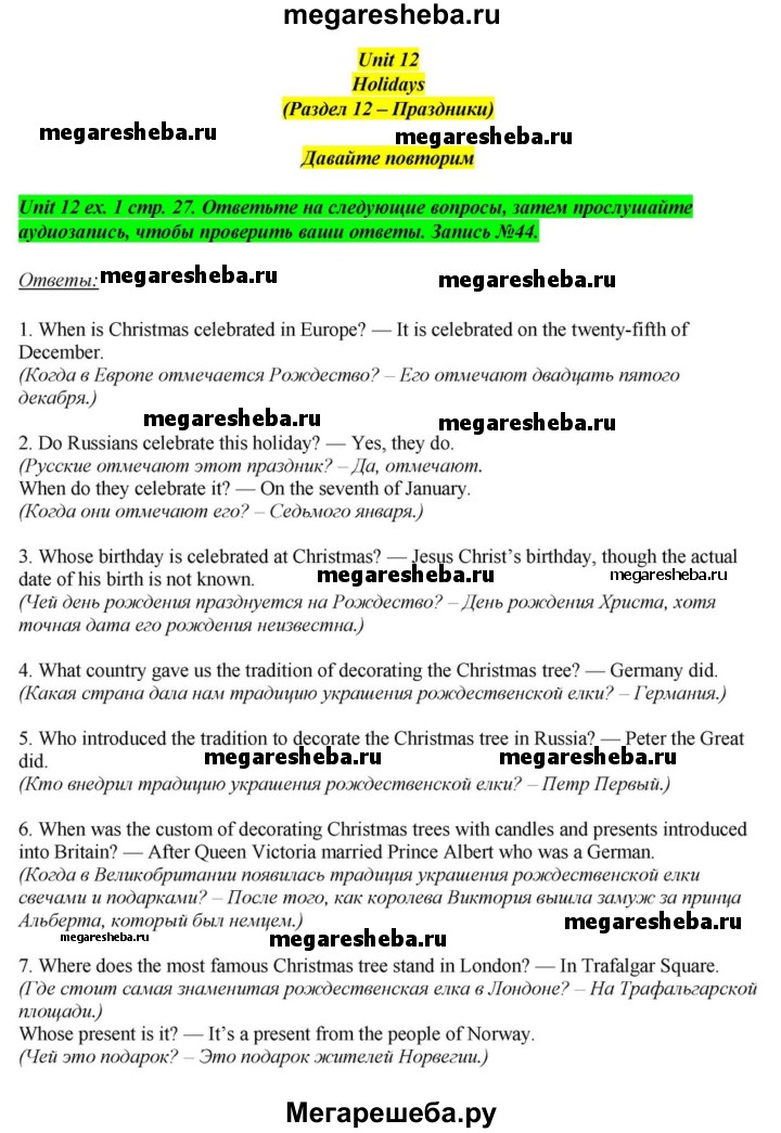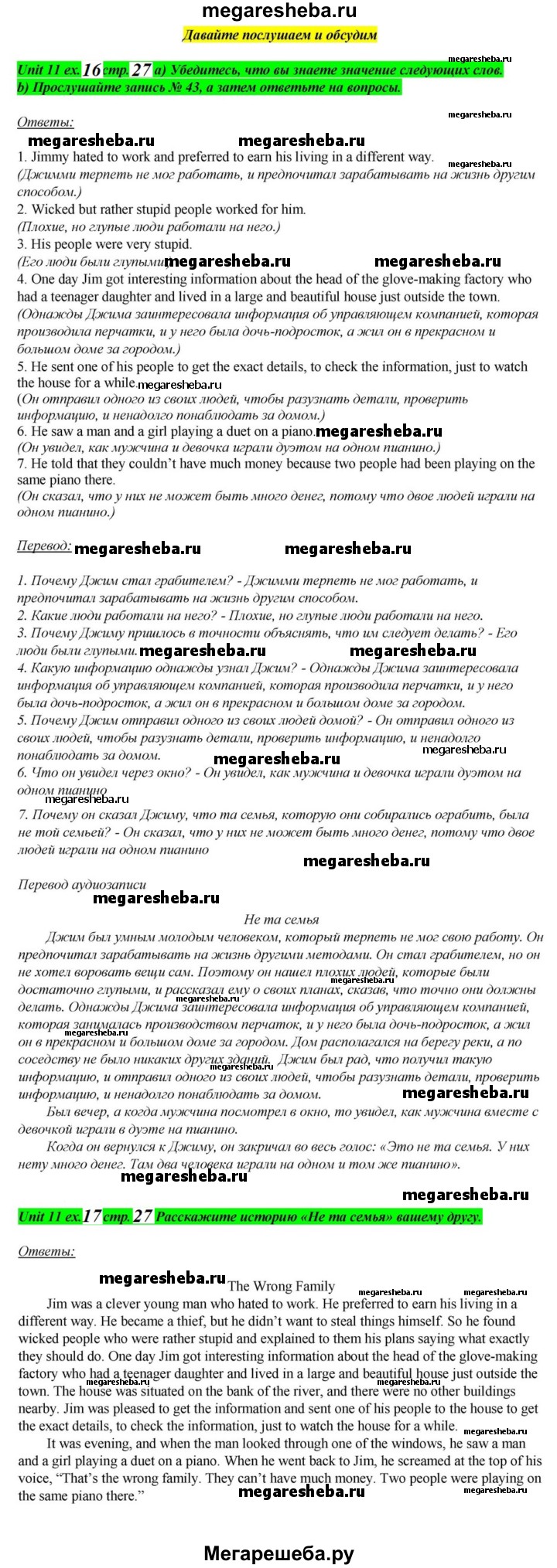 Подробный решебник (ГДЗ) по Английскому языку за 6 (шестой) класс - готовый ответ часть 2. страница - 27. Авторы учебника: Афанасьева, Михеева, Углубленный уровень. Издательство: Просвещение 2015-2023.