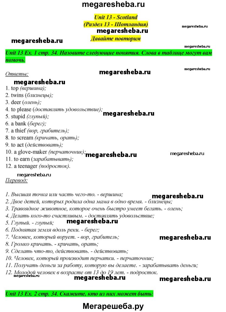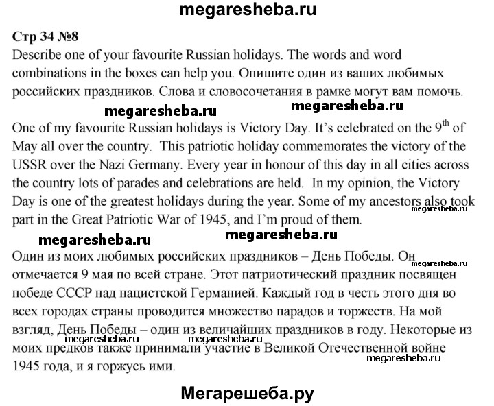 Подробный решебник (ГДЗ) по Английскому языку за 6 (шестой) класс - готовый ответ часть 2. страница - 34. Авторы учебника: Афанасьева, Михеева, Углубленный уровень. Издательство: Просвещение 2015-2023.