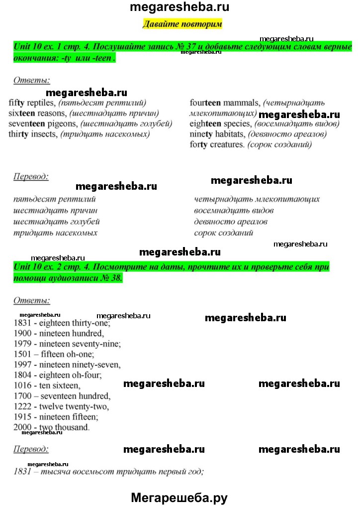 Подробный решебник (ГДЗ) по Английскому языку за 6 (шестой) класс - готовый ответ часть 2. страница - 4. Авторы учебника: Афанасьева, Михеева, Углубленный уровень. Издательство: Просвещение 2015-2023.