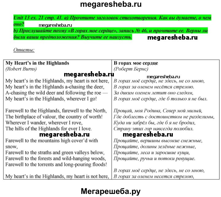 Подробный решебник (ГДЗ) по Английскому языку за 6 (шестой) класс - готовый ответ часть 2. страница - 41. Авторы учебника: Афанасьева, Михеева, Углубленный уровень. Издательство: Просвещение 2015-2023.