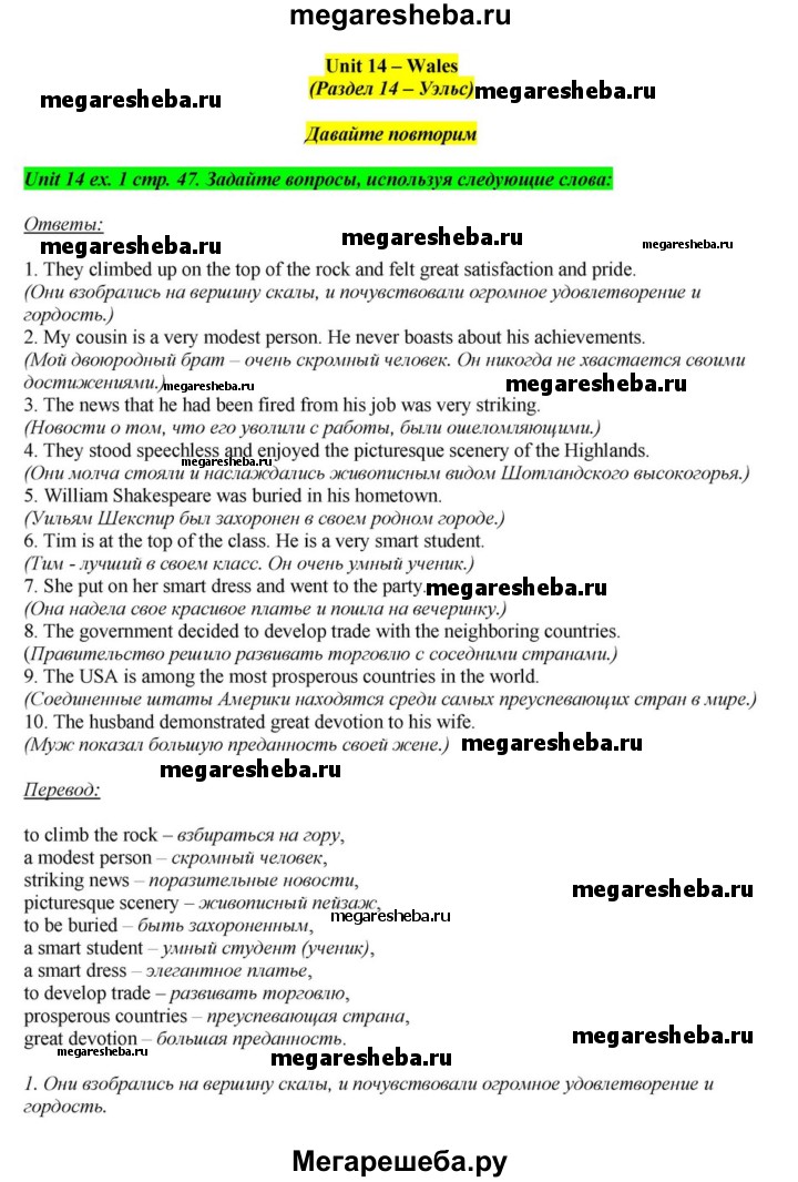 Подробный решебник (ГДЗ) по Английскому языку за 6 (шестой) класс - готовый ответ часть 2. страница - 47. Авторы учебника: Афанасьева, Михеева, Углубленный уровень. Издательство: Просвещение 2015-2023.