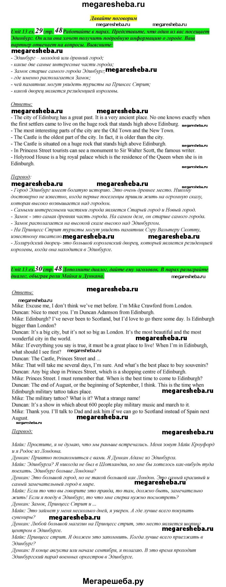 Подробный решебник (ГДЗ) по Английскому языку за 6 (шестой) класс - готовый ответ часть 2. страница - 48. Авторы учебника: Афанасьева, Михеева, Углубленный уровень. Издательство: Просвещение 2015-2023.