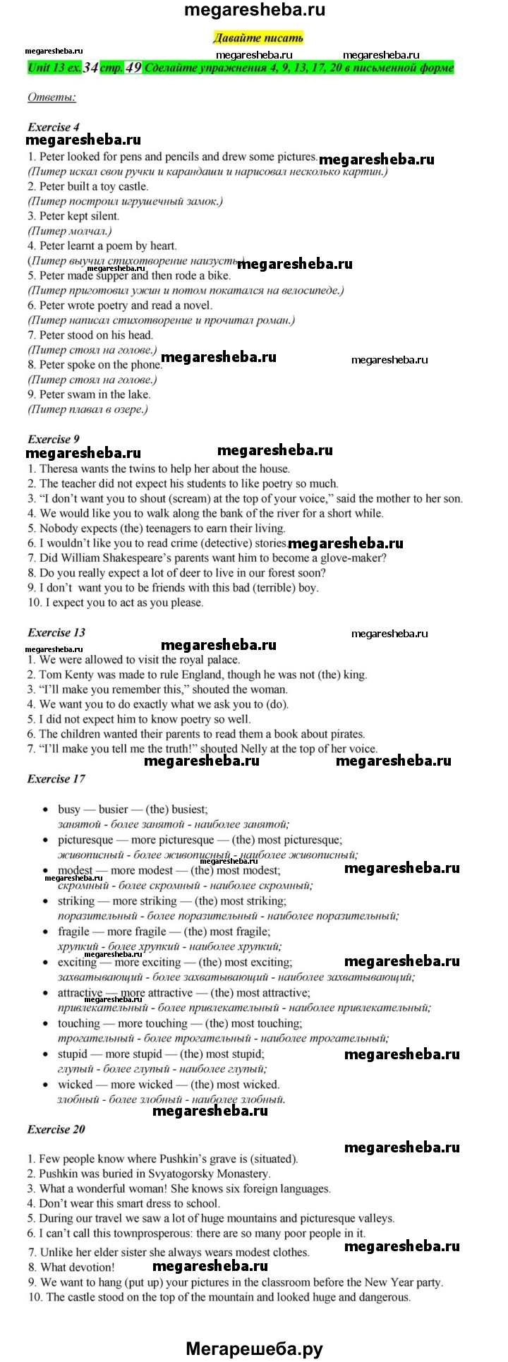 Подробный решебник (ГДЗ) по Английскому языку за 6 (шестой) класс - готовый ответ часть 2. страница - 49. Авторы учебника: Афанасьева, Михеева, Углубленный уровень. Издательство: Просвещение 2015-2023.